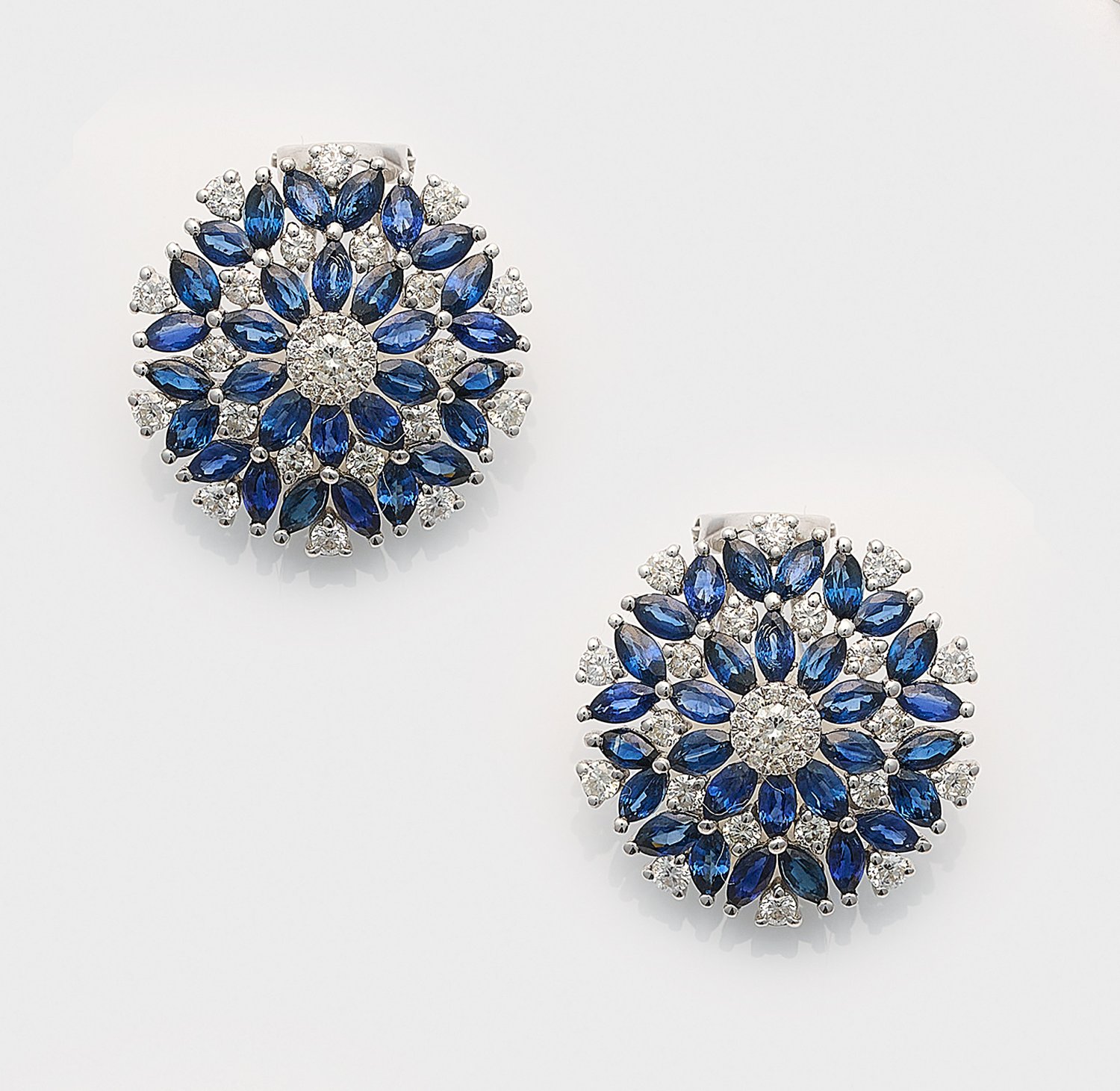 Lot 1046: Paar repräsentative Saphir-Brillant-Ohrclips