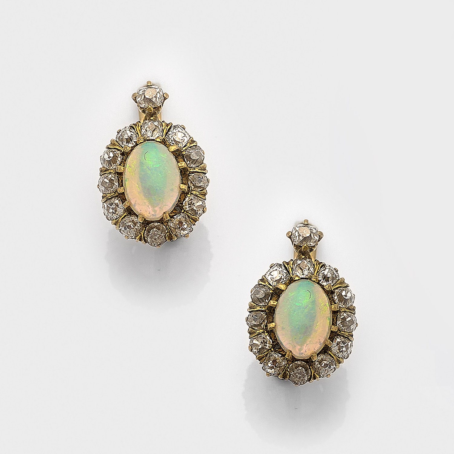 Lot 1187: Paar Belle Epoque Opal-Diamant-Ohrringe