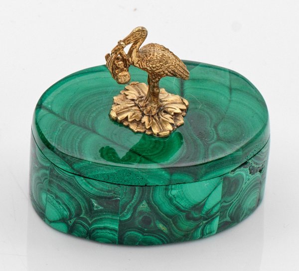 Lot 1329: Malachitdose mit figürlichem Knauf