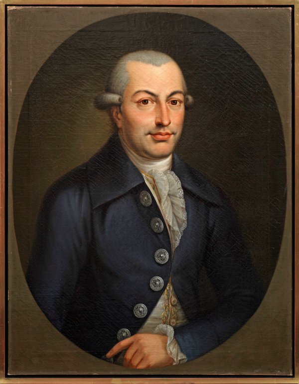 In fein lasierender Malerei und mit weicher Lichtführung ausgeführtes, repräsentatives Porträt, das den Dargestellten subtil charakterisiert und ganz als gebildeten Herrn wiedergibt. Gewandet ist dieser in einen dunkelblauen Rock mit Silberknöpfen, eine weiße, goldbestickte Weste, Jabot und Hemdsärmel zeigen feinste Spitze. Öl/Lwd.; 77,5 cm x 60 cm. Rahmen.