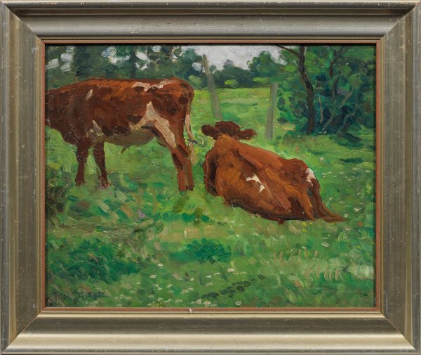 In lockerem, impressionistischem Duktus gemaltes Werk Schapers, der ab 1890 an der Berliner Akademie studierte und 1894 nach Hamburg zurückkehrte. Er gehört zu den bedeutendsten Hamburger Malern um 1900 und wurde 1901 in die "Berliner Secession" aufgenommen. Öl/Malkarton. L. u. sign.; Ca. 40 cm x 50 cm. Rahmen.