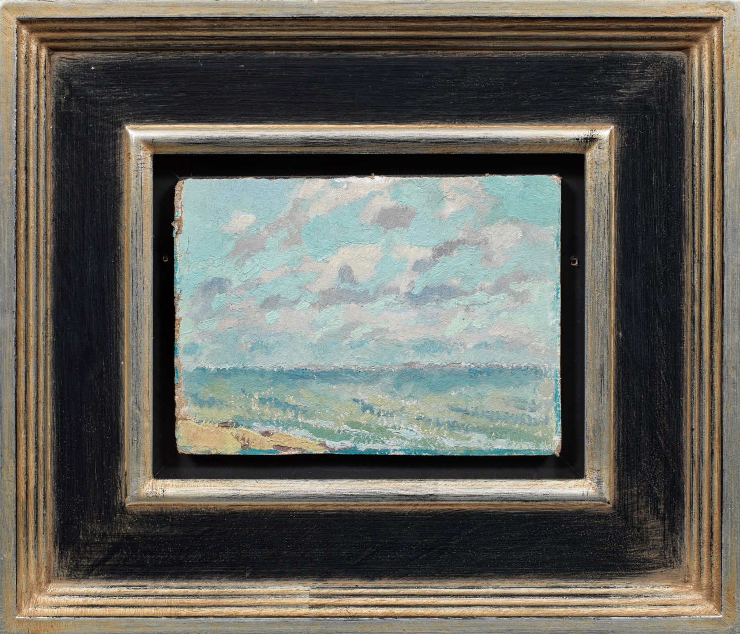 Oil on paper, laid down on thick cardboard or panel.