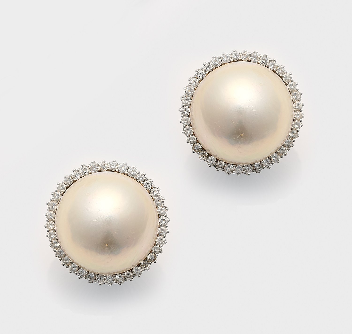 Lot 932: Paar elegante Mabé-Perl-Brillant-Ohrclips von Leicht