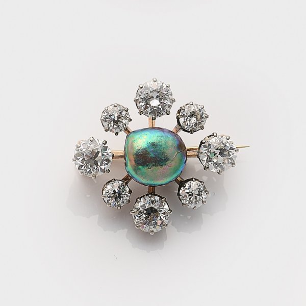 Lot 938: Belle Epoque Diamant-Brosche mit seltener Abalone-Perle