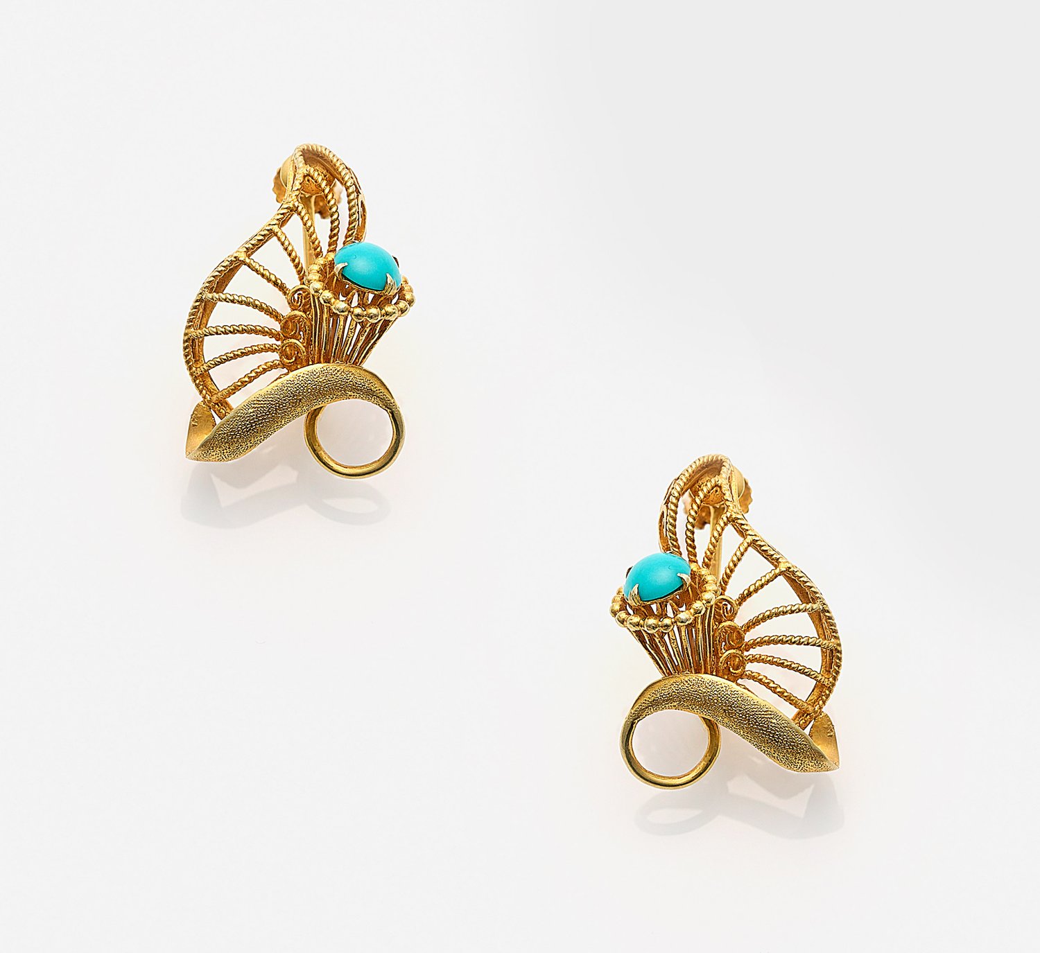 Lot 998: Paar Türkis-Ohrringe aus den 1930er Jahren
