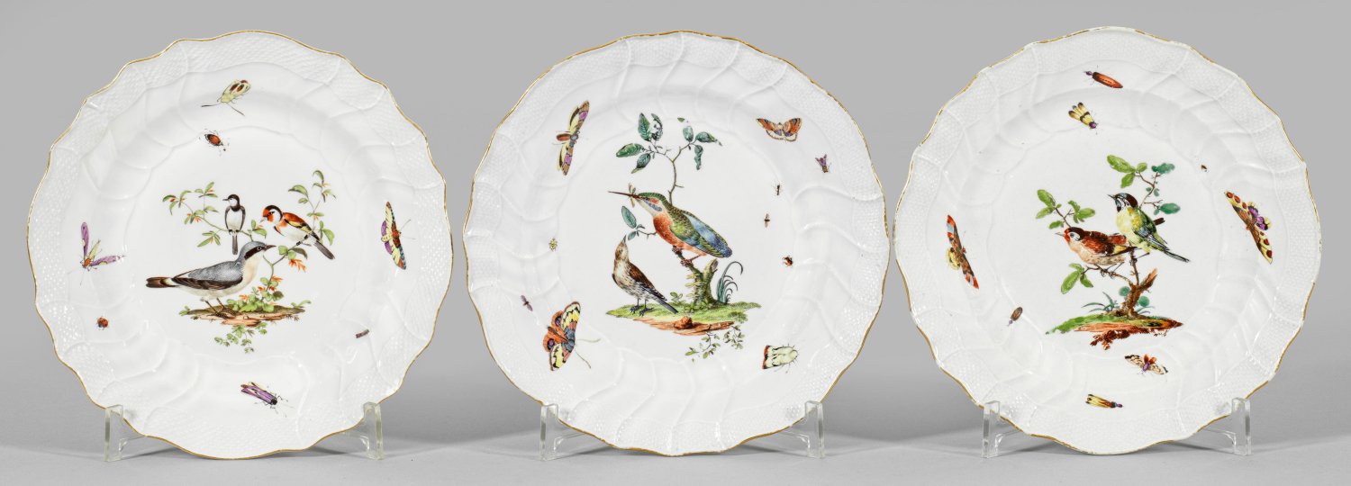 Lot 2439: Drei Zierteller mit "Waldvögel"-Dekor