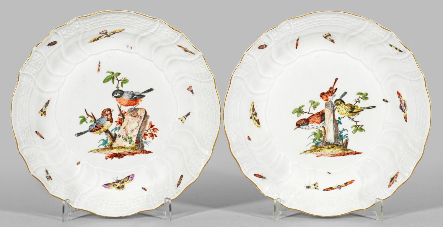 Lot 2444: Paar tiefe Platten mit "Waldvögel"-Dekor