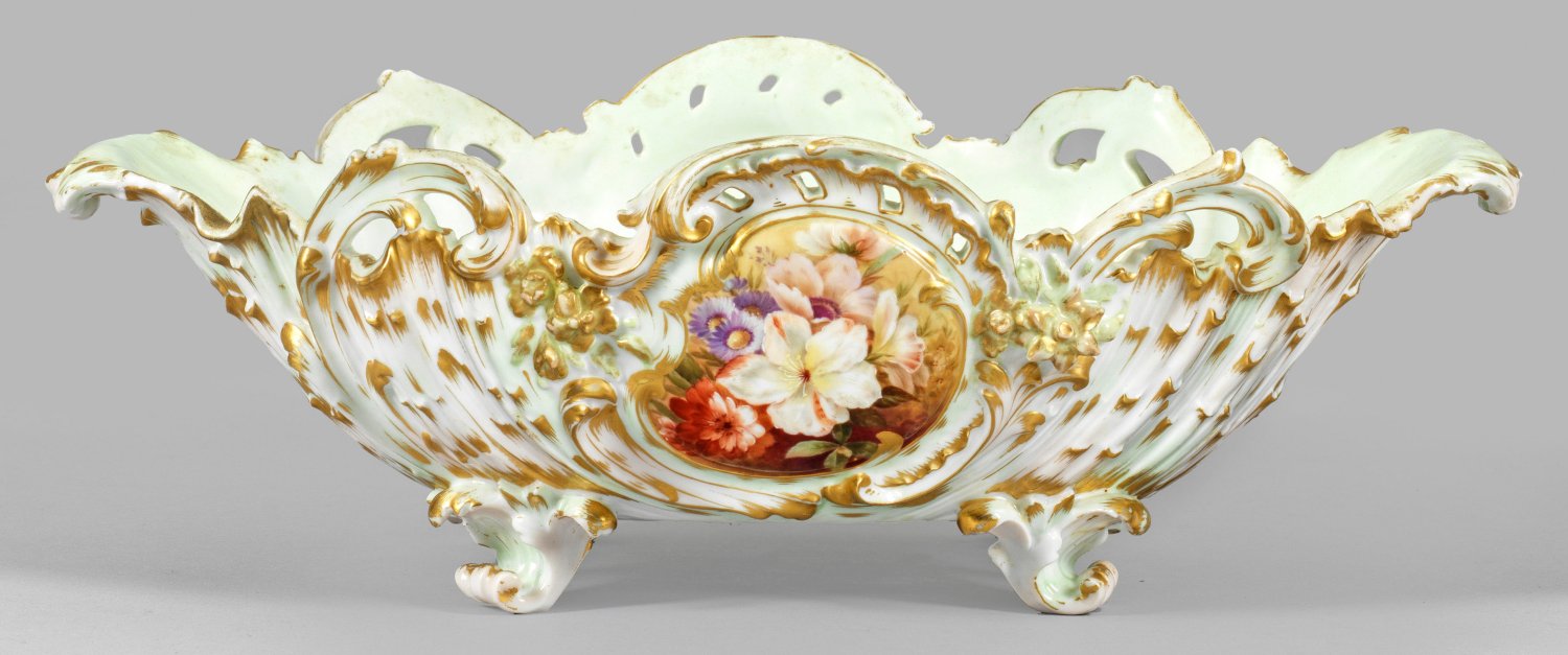 A large Historism porcelain fruit basket painted with flower decor. Restored.