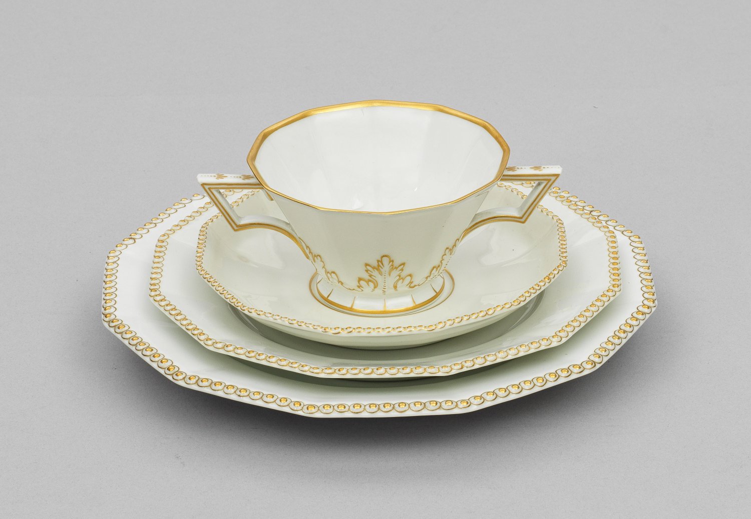 A 3-piece porcelain dinner in dodecagonal shape. Manufacturer's mark.
