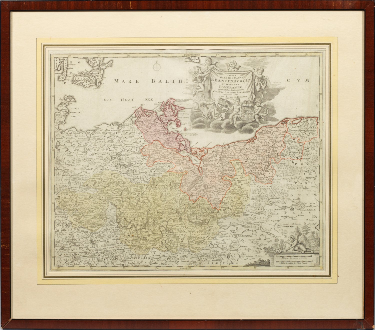 Hand-coloured, copper engraved map of Brandenburg und Pomerania by Johann Baptista Homann, published in Nuremberg, circa 1720/1730.