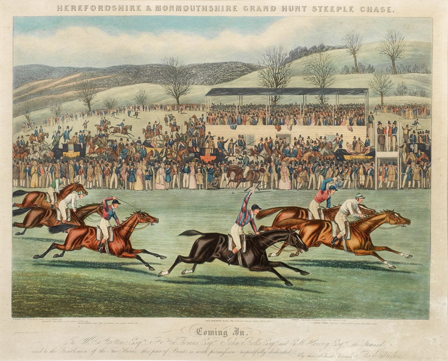 "Herefordshire & Monmouthshire grand hunt steeple chase - Coming in" und "Moores's Tally Ho! to the Sports. The Noble Tips.". Originaltitel