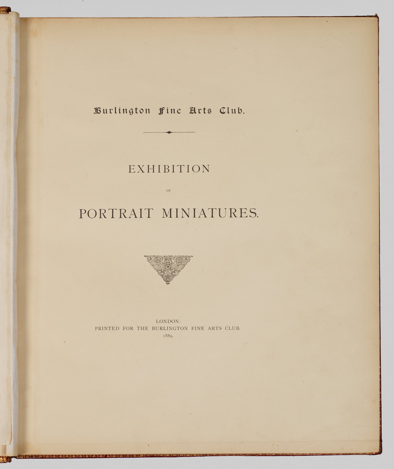 Catalogue of exhibition of Portrait Miniatures printed for the Burlington Fine Arts Club, London published in 1889. Not collated.