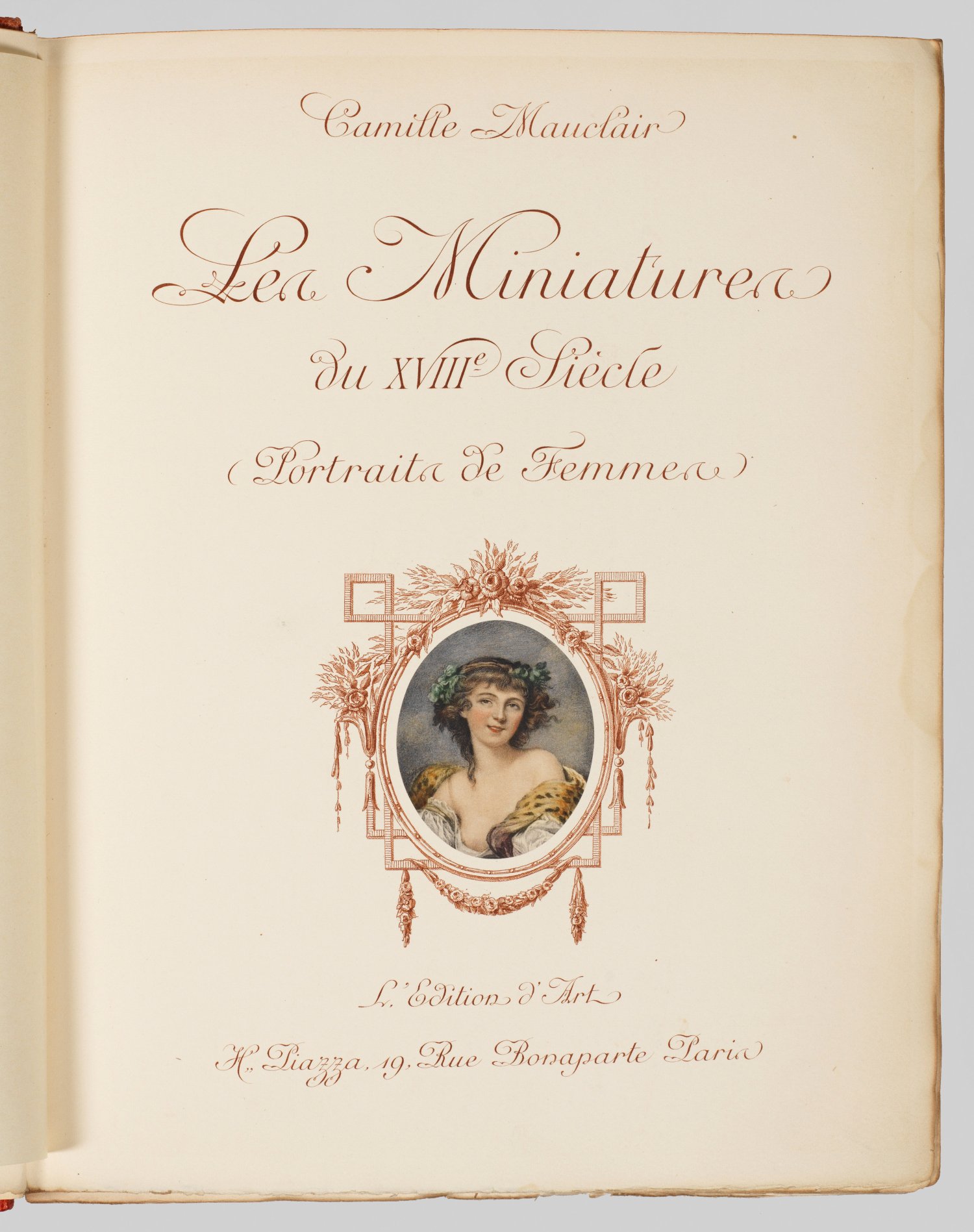 Catalogue of miniatures of the 18th C. (portraits of women) by Camille Mauclair, published in Paris, 1912. Not collated.