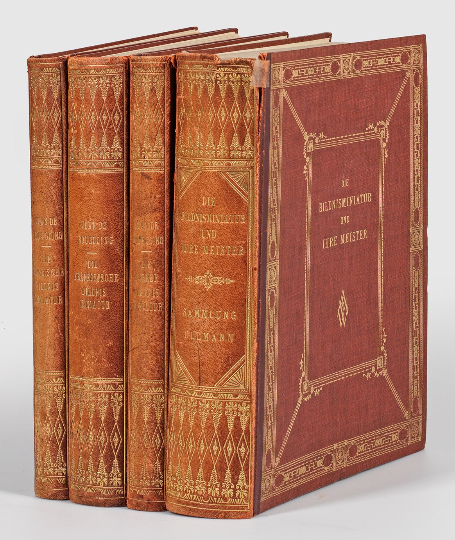 Four volumes on the Viennese portrait miniature by Jean de Bourgoing, published in 1926. Limited and numbered. Signs of use. Not collated.