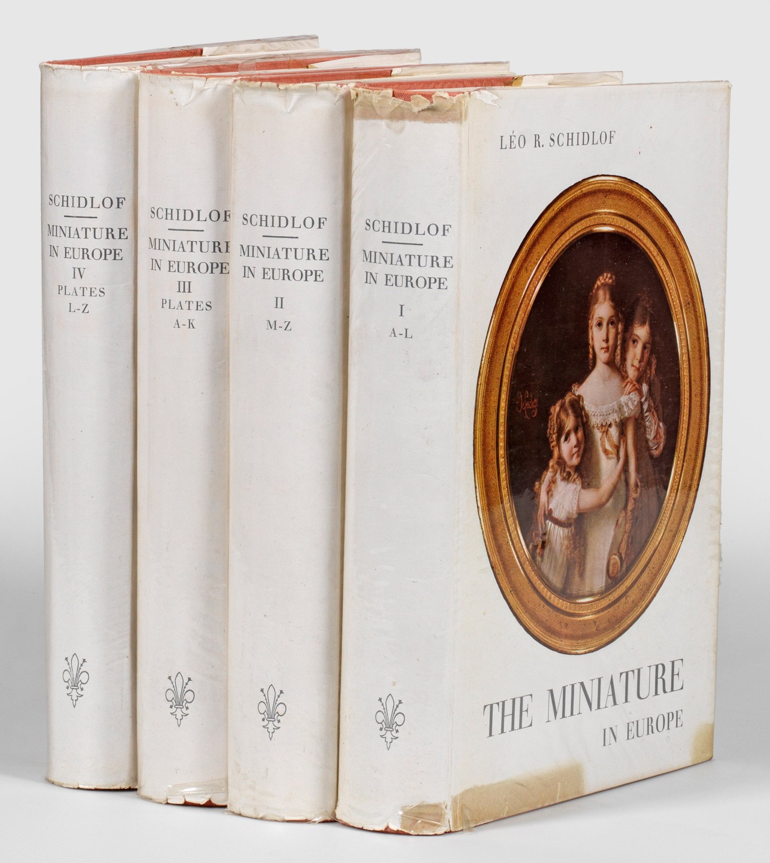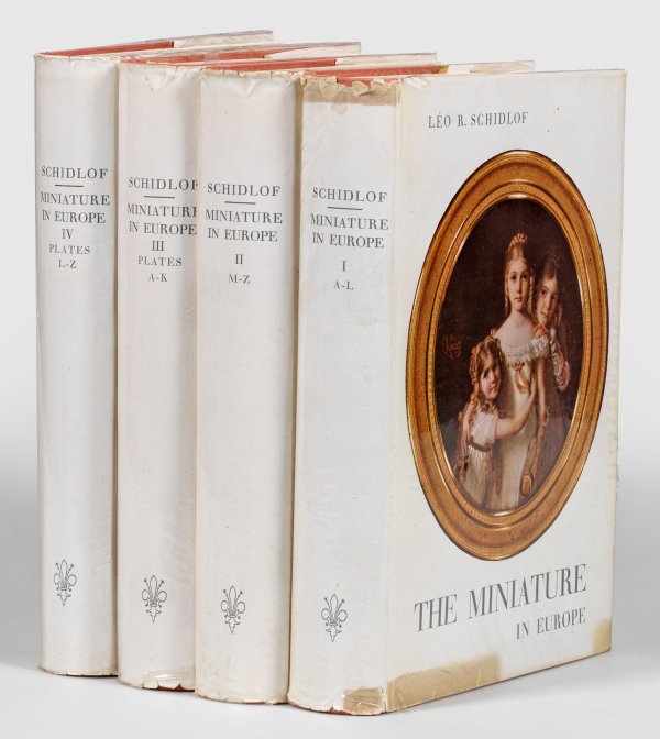 Four volumes of the catalogue of European miniatures by Léo R. Schidlof, published in 1964. Limited and numbered. Signs of use, partially foxed. Not collated.