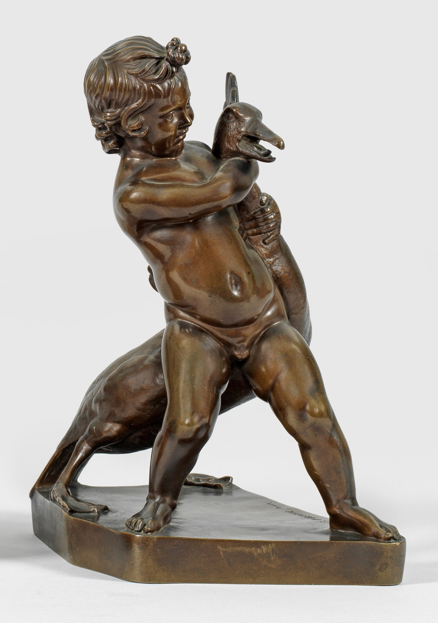 Bronze, dunkel patiniert. Guss des 19. Jhs. von Ferdinand Barbedienne, Paris, gem. "F. BARBEDIENNE, FONDEUR". Nach der bekannten, 1792 entdeckten, antiken, römischen Marmorskulptur des 1./2. Jh. n. Chr. (wiederum Kopie eines griechischen, hellenistischen Originals des 2. Jhs. v. Chr.) im Louvre in Paris. H. 27,5 cm.