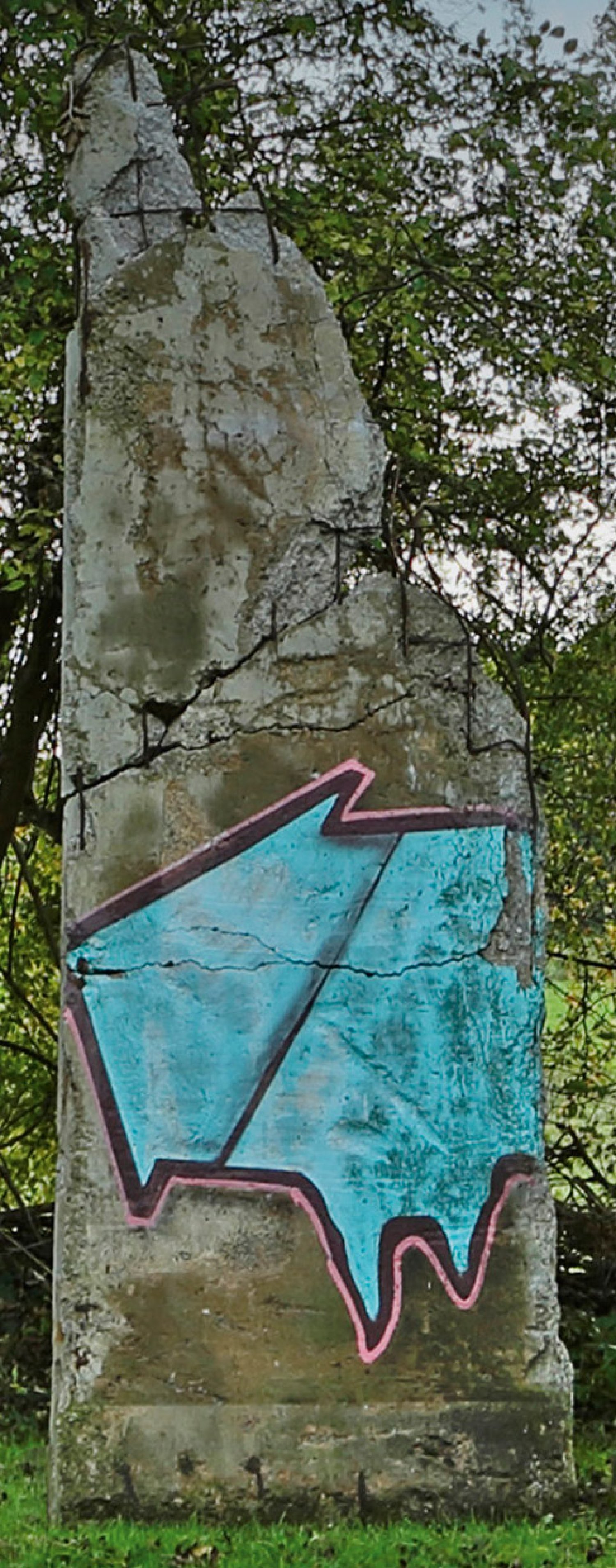 Beton mit Stahlarmierung; das Graffiti gesprayt. Das Stück gehört zu einem Teil der historischen, seit 1975 errichteten sog. "vierten Generation" der Berliner Mauer als genormtes, L-förmigen Stützwandelement, das passgenau aufgestellt werden konnte. Besch.; H. ca. 350 cm; B. ca. 118 cm; T. ca. 170 cm.
