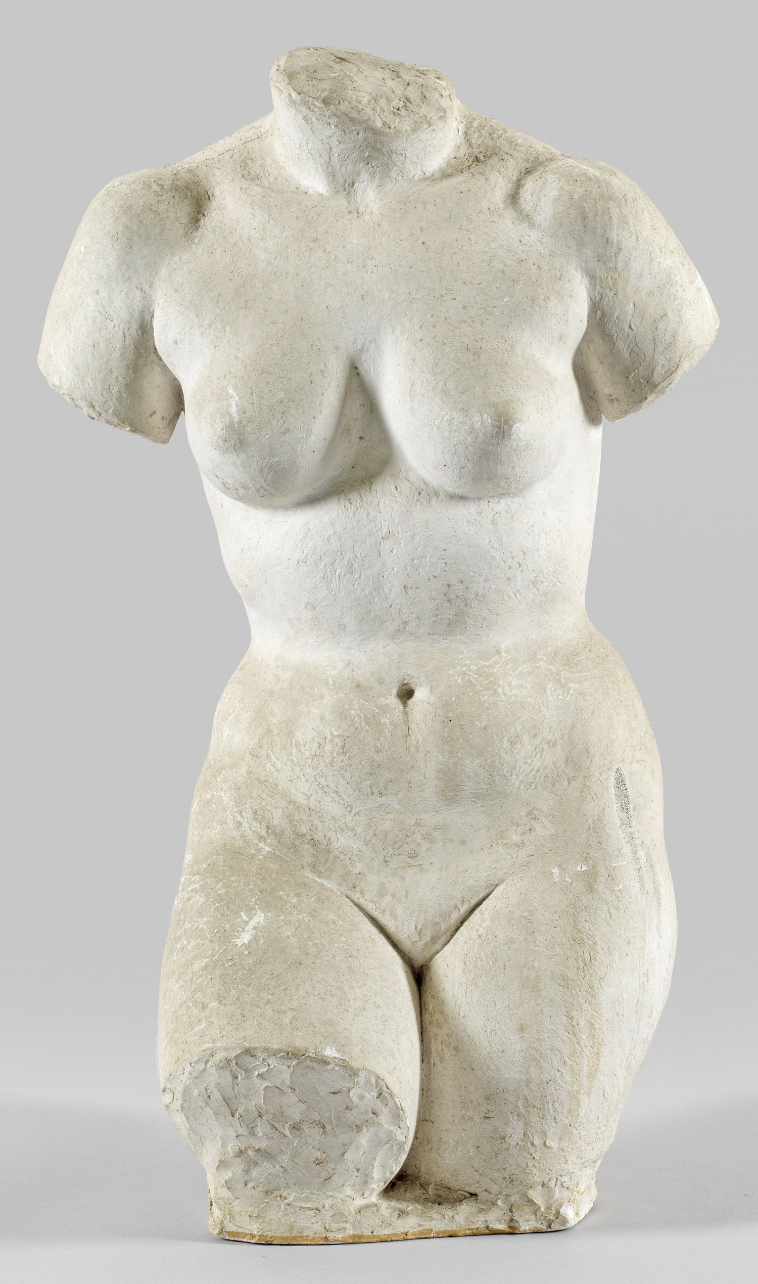 Gips. Vollplastische Darstellung, inspiriert durch antike Bildwerke sowie Arbeiten von Bildhauern der Klassischen Moderne, u. a. Aristide Maillol und Wilhelm Lehmbruck. Lagerspuren. H. 77 cm.