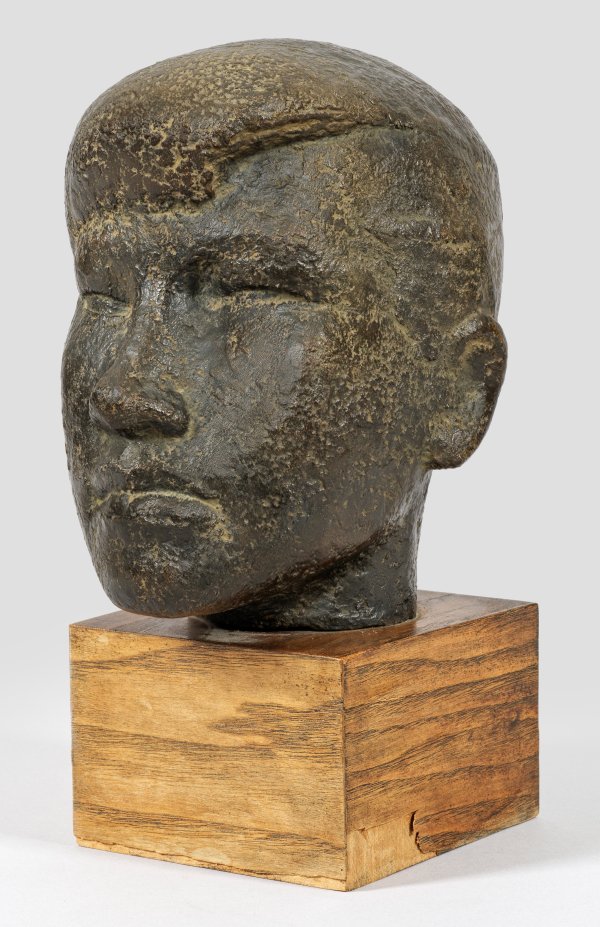 Bronze, dunkelbraun patiniert, 1956. Sign.; Holzsockel mit Eichenfurnier. Unter dem Sockel in Bleistift dat. "7.11.1958". Wvz. Grohn 355. Einer von nur zwei bekannten Güssen. Dargestellt ist Ingrid Waldow, später verheiratete Kraushaar (1940 - 2001) als Mädchen, die zur Entstehungszeit als junge Sekretärin in der Deutschen Akademie der Künste in (Ost-)Berlin arbeitete und hierdurch des Öfteren Seitz begegnete. Zu den bedeutendsten Werken von Seitz, der neben Barlach und Marcks zu den bedeutendsten figürlich arbeitenden deutschen Bildhauern des 20. Jhs. zählt, gehört sein zur selben Zeit entstandenes Bronze-Denkmal für Käthe Kollwitz von 1956-1958. Die volumenhaft gerundete, in moderner Weise auf das Wesentliche reduzierende Darstellung dieses Kopfes ist charakteristisch für das Oeuvre von Seitz in den 1950er Jahren, als er u. a. Porträts von Bertolt Brecht, Thomas Mann sowie Pablo Picasso schuf. Seitz war 1950 Gründungsmitglied der Akademie der Künste in Berlin, wo er 1951-1958 ein Meisteratelier für Bildhauerei leitete, bis er 1958 einem Ruf an die Hochschule für bildende Künste in Hamburg folgte. Läsuren am Furnier des Sockels. Bronze-H. 19,5 cm; Ges.-H. 27,2 cm.