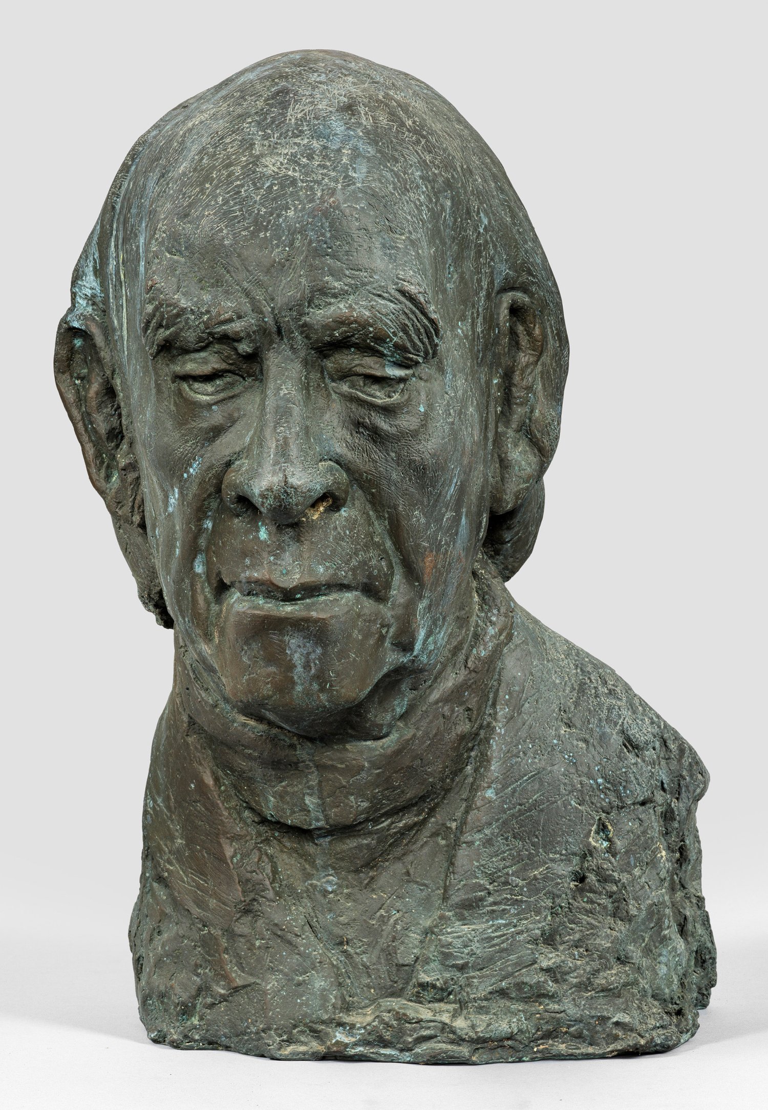 Bronze, grau patiniert, 1987-1989. Am Unterrand Stempel-Sign. mit Nummerierung bzw. Dat. "GAUTAM 1/1 2000". Zeitgenössisch-moderne, realistische, die Physiognomie und den Charakter des alten Bildhauers Arno Breker (1900 - 1991) herausarbeitende Büste Gautams, den er 1989 noch selbst in dessen Düsseldorfer Atelier besuchte. Gautam studierte an der Hochschule für Bildende Kunst und Musik in Bremen im Fachbereich Plastik bei Waldemar Otto und Bernd Altenstein, viele weitere Studienaufenthalte führten ihn durch Deutschland und Europa. 1984-1990 lebte und arbeitete er in Landsberg am Lech, 1991-2010 in Moers. Neben Bildnissen und verschiedensten Darstellungen kleineren Formats schuf Gautam seit den 1980er Jahren zahlreiche Arbeiten für den öffentlichen Raum. H. 45 cm.