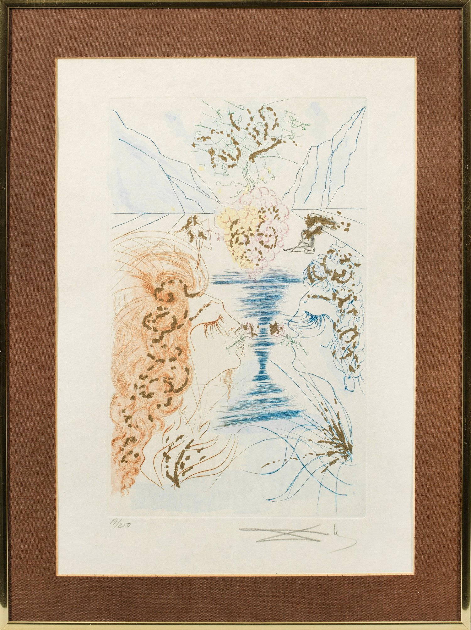 After Salvador Dalí. Etching with stencil colouring and gold on Japan paper. Inscribed and numbered 19/250. Blue stamp "Edition USA" on the reverse.