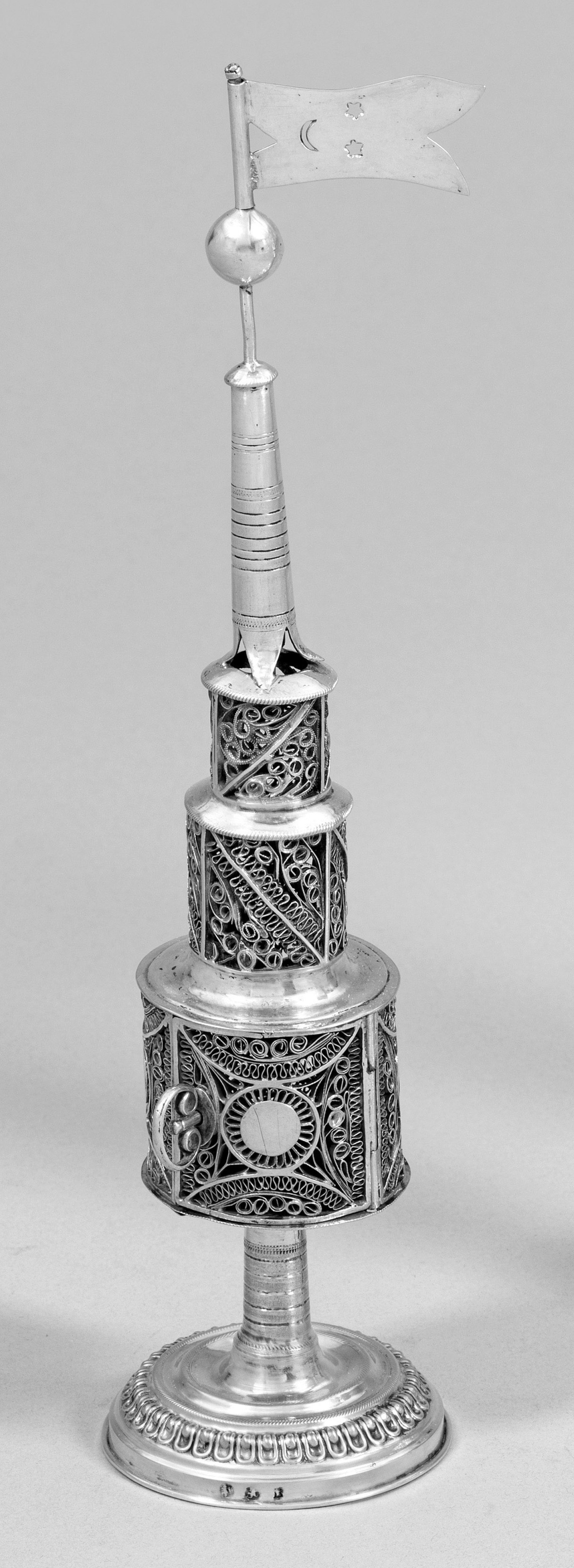 A German silver besamim spice tower. Assay and indistinct master´s mark.