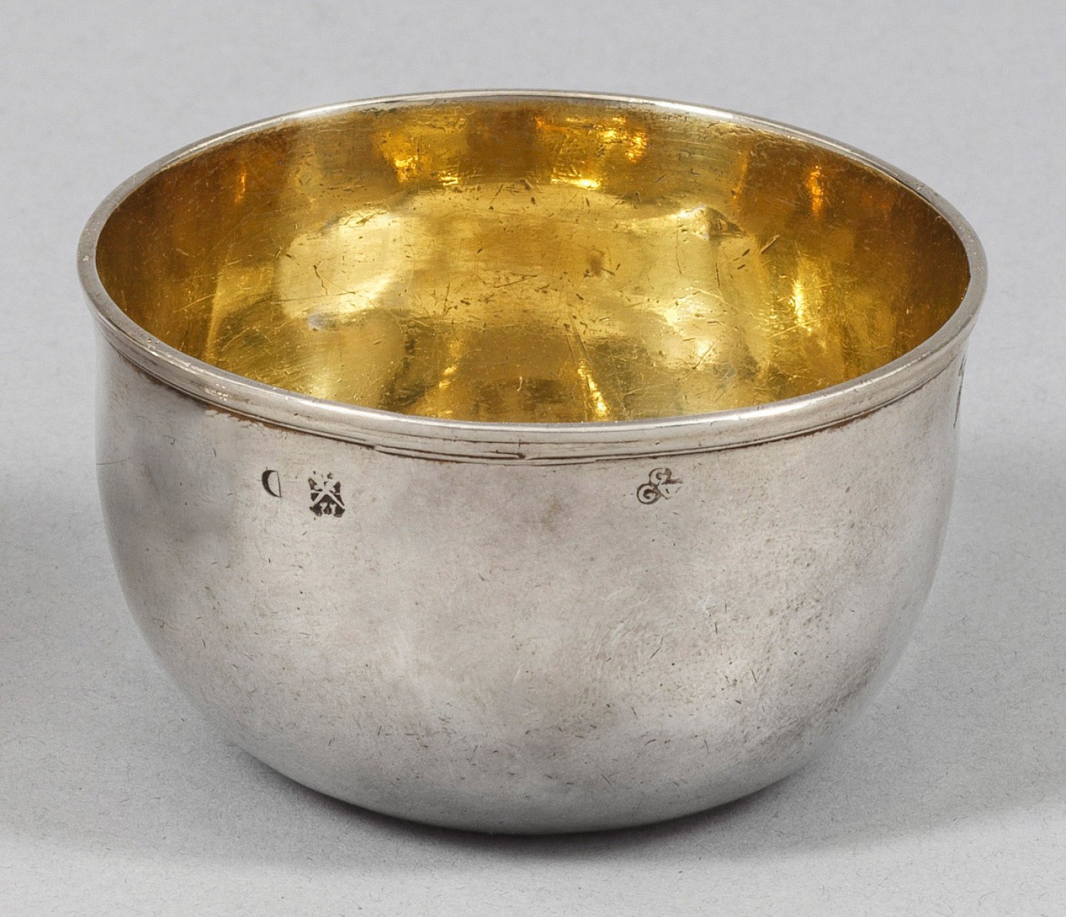 A small German Baroque silver beaker. Gilt inside. Assay and so far unknown master´s mark "GGW". Date letter "D".