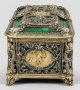 Solche Prunkschatullen dienten im 18. Jh. zur Aufbewahrung von Schmuck, Kosmetik, Dokumenten oder Schreibutensilien. Eine nahezu identische Prunkschatulle aus teilw. vergoldetem Silber, Emaille, Malachit und Lapislazuli, ebenfalls mit Darstellungen von Amor und Psyche, befindet sich im Cleveland Museum of Art, John L. Severance Fund 1974.86. Dabei handelt es sich um ein Geschenk von Kardinal Pietro Ottoboni (1667-1740) zur Hochzeit von Pier Gregorio Boncompagni Ludovisi und Francesca Ottoboni im Jahr 1731. Ihre Heirat war der Zusammenschluss zwei bedeutender, päpstlicher Familien in Italien- der Boncompagni-Ludovisi aus Bologna und der Ottoboni aus Venedig. Es könnte sein, dass auch die vorliegende Schatulle im Auftrag des Kardinals von demselben Goldschmied ausgeführt wurde bzw. aus der Sammlung von Ottoboni stammt.