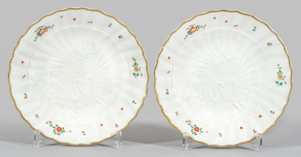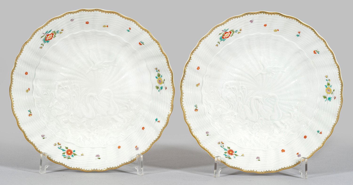Lot 722: Zwei Suppenteller mit Schwanenservice-Dekor