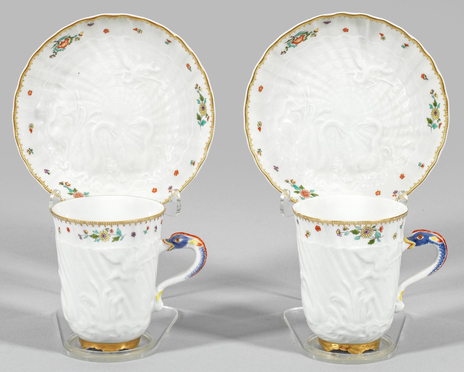 Lot 741: Paar Schokoladenbecher mit Schwanenservice-Dekor