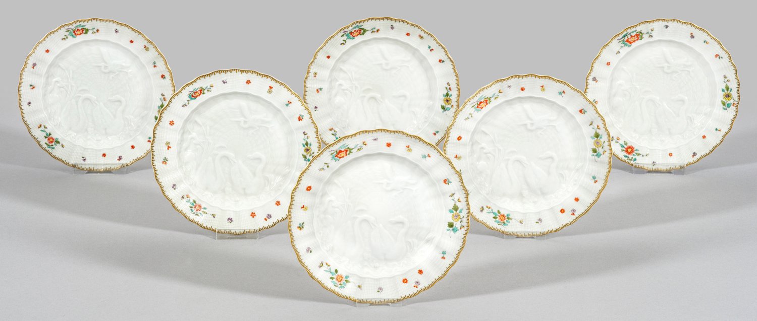 Lot 756: Sechs Brotteller mit Schwanenservice-Dekor