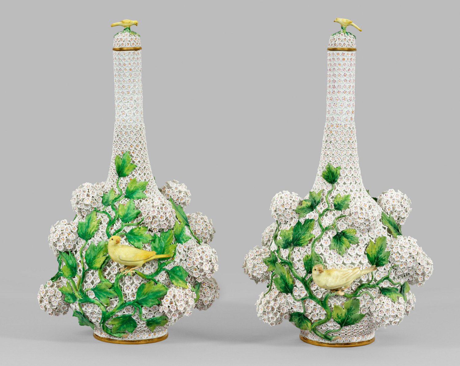 Lot 809: Außergewöhnliches Paar Schneeballenvasen von Meissen