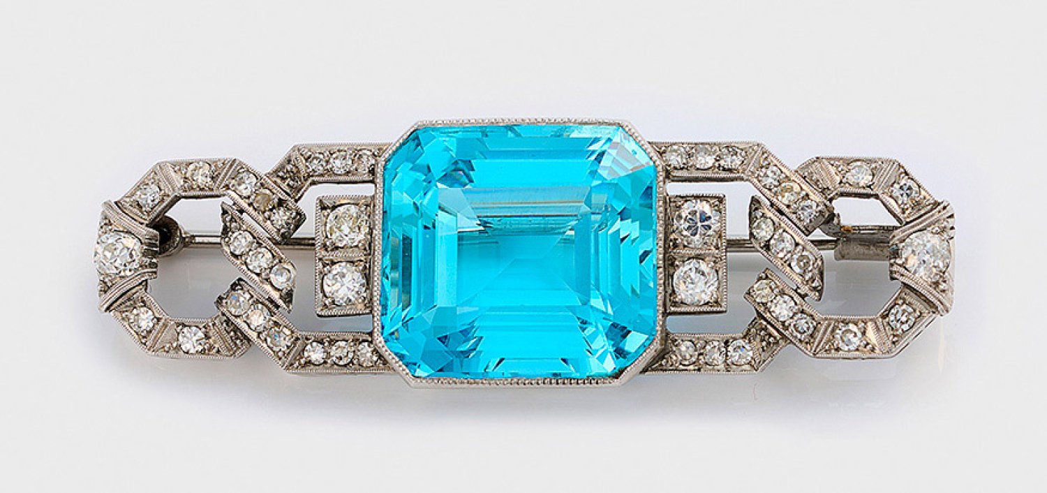 Lot 1087: Aquamarin-Diamantbrosche aus den 1950er Jahren