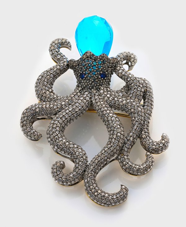Lot 1166: Dekorative Oktopus-Brosche mit Topas