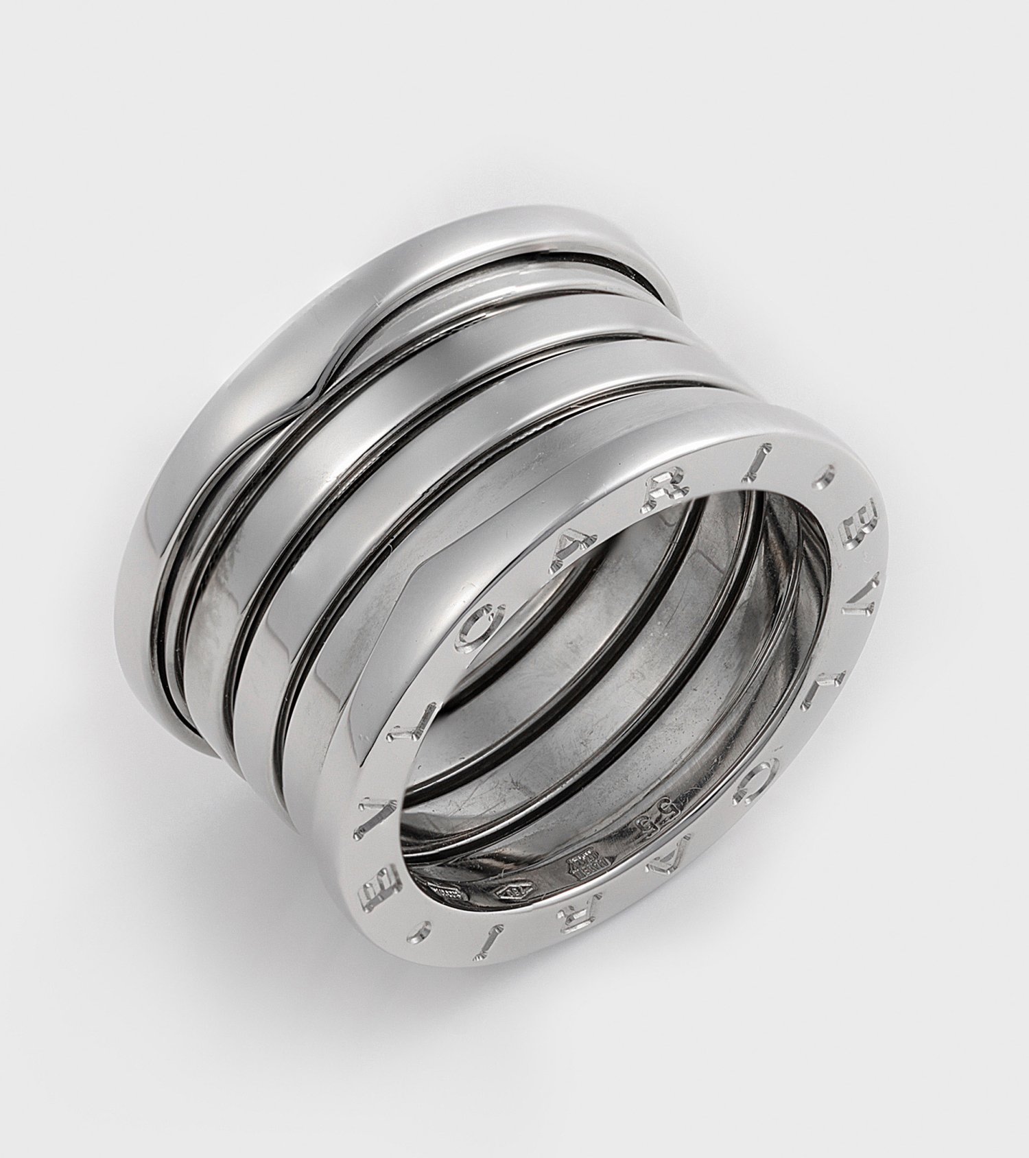 Weißgold, gest. 750. 4-bändiger Ring, beidseitig mit BVLGARI-Gravur. Herstellerzeichen. Nahezu ungetragen. Gew. ca. 12,69 g. Neupreis ca. € 3.700,-.