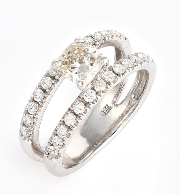 Weißgold, gest. 750. Zentral besetzt mit Brillanten von ca. 1,03 ct. (K/vvs), gerahmt von Brillanten von zus. ca. 0,65 ct.; Gew. ca. 6,72 g.