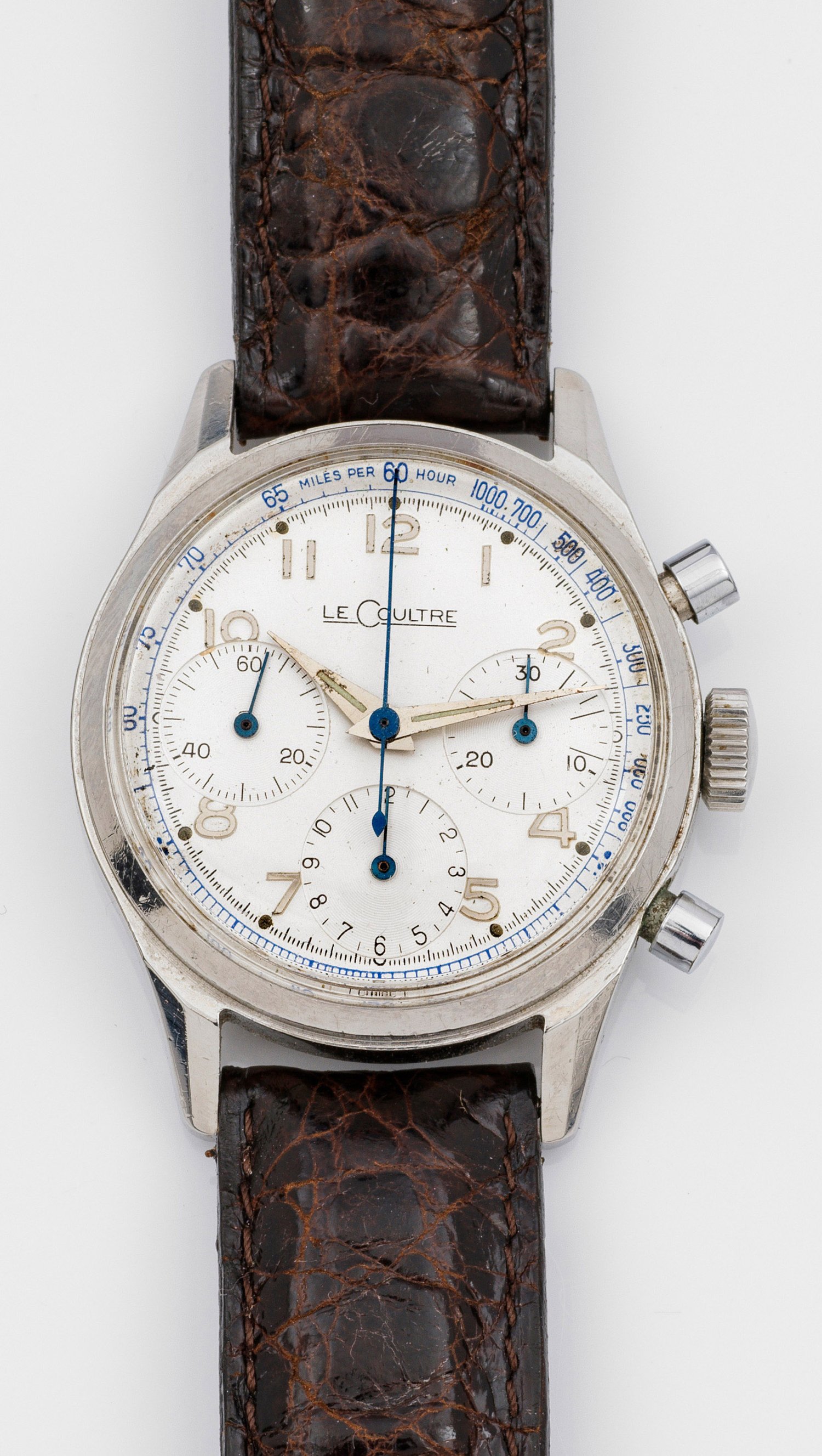 Gentlemen's wristwatch by LeCoultre, mechanical and chronograph movement, in steel. Maker's mark.
