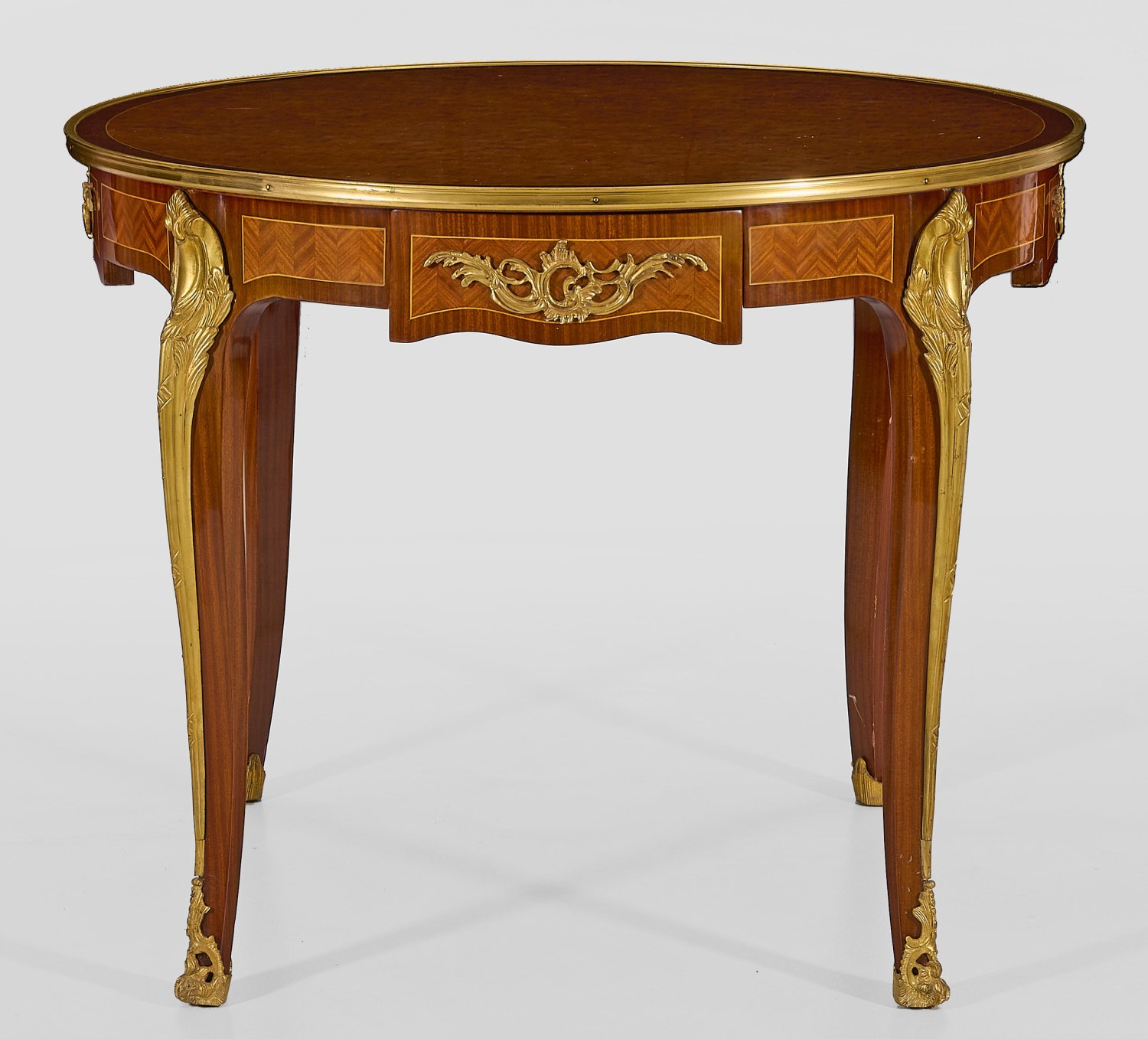 A French mahogany veneered Louis XV style table.