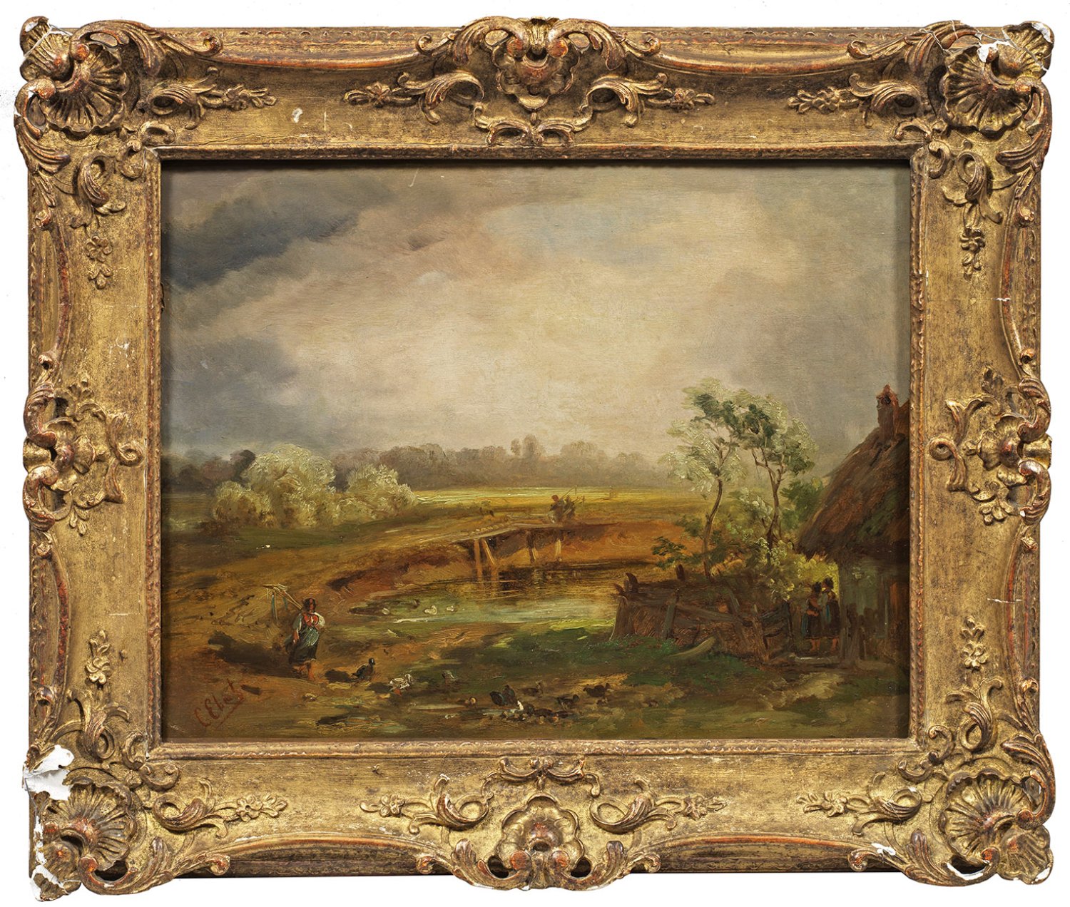 Die mit lockerem Duktus gemalte Landschaft zeigt mit seinem temperamentvollen, auf die Gesamtstimmung hin angelegten Stil, den prägenden Einfluss der Werke der Haager Schule und der Schule von Barbizon, insbesondere der Pleinair-Malerei von Charles-François Daubigny. Diese dürfte er während seines Besuchs der Weltausstellung in Paris 1867 und seiner Holland-Reisen 1866 und 1870 kennengelernt haben. Öl/Lwd.; L. u. sign.; 29,5 cm x 37,5 cm. Rahmen.