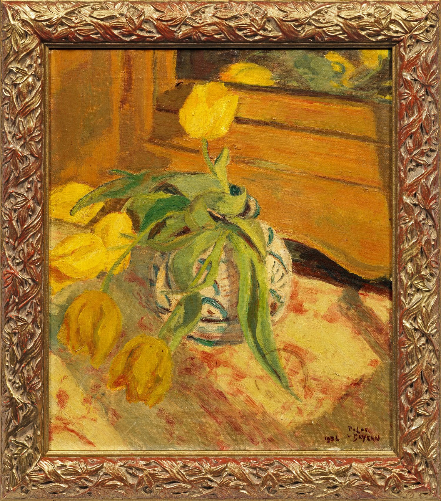 Impressionistische, mit weich-pastosem Duktus gemalte Darstellung. Die Künstlerin, die der Wittelsbacher-Dynastie und spanischen Königsfamilie entstammte, erhielt ihre Ausbildung zur Malerin durch Hans von Bartels, Willi Geiger, Moritz Heymann und Viktoria Zimmermann. Sie wurde durch Claude Monet, Camille Pissarro und den französischen Impressionismus geprägt. Ihre Hauptsujets waren Landschaften, daneben malte sie aber auch Stillleben und Genreszenen. Seit 1911 reüssierte Maria del Pilar von Bayern als talentierte Malerin auch in Ausstellungen und durch Publikationen in der Zeitschrift "Jugend". Öl/Lwd.; R. u. sign. u. dat. (19)36. 40 cm x 35 cm. Rahmen.