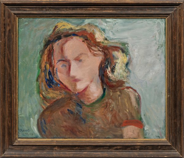 Mit furiosem, kräftigem und pastosem Duktus gemaltes Brustbild in erdigem Kolorit mit vereinzelten Farbakzenten in Grün, Blau und Rot. Paar absolvierte eine Lithographenlehre und studierte anschließend 1925-1927 an der Stuttgarter Akademie bei Hans Spiegel. Nach einem Aufenthalt in Berlin bildete er sich 1930/1931 an der Académie Julian in Paris weiter. Die Begegnung mit der französischen Kunst prägte Paars Schaffen nachhaltig. Nach spätimpressionistischen Anfängen, die bereits unter dem Einfluss des Expressionismus standen, setzte er sich mit dem synthetischen Kubismus auseinander, um schließlich einen subjektiven Realismus zu entwickeln, in dem er auch lyrische und visionäre Komponenten verarbeitete. Paar war Mitglied des Hagenbundes, der Grazer und der Wiener Secession und schließlich Mitbegründer der Künstlergruppe "Der Kreis". Öl/Lwd.; L. u. sign. und dat. (19)48/49. 42 cm x 52 cm. Rahmen.