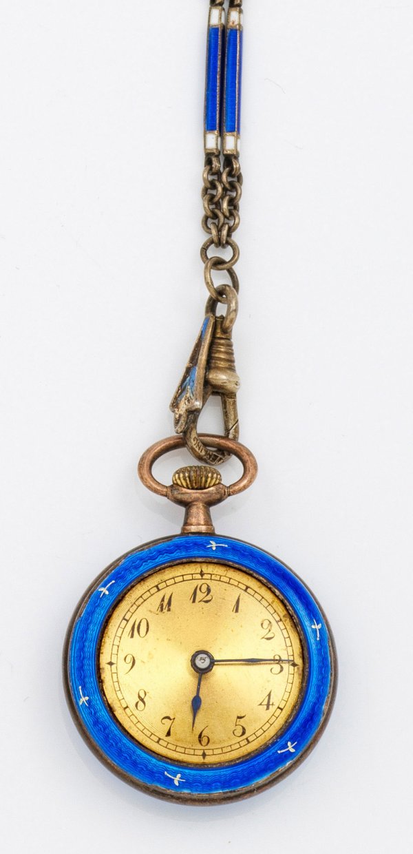 Pocket watch with chain by Fauvette HAD, Switzerland, circa 1900. Gilt and enamelled silver. Mechanical movement with crown wind.