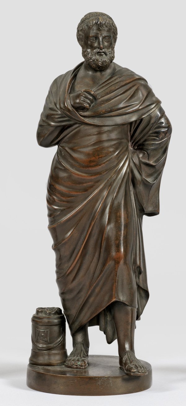 Bronze, dunkelbraun patiniert. Grand Tour-Objekt. Im Detail fein ausgeführter Guss des 19. Jhs. nach der berühmten Marmorskulptur in den Vatikanischen Museen (bzw. im Lateranmuseum). Die aus der 2. Hälfte des 1. Jh. v. Chr. stammende Marmorstatue entstand nach einem griechischen Bronzevorbild des 4. Jhs. v. Chr. und wurde in den 1830er Jahren bei Terracina in den Ruinen einer römischen Villa gefunden. H. 32,7 cm.