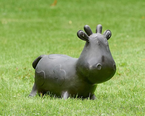 Bronze oder Metallguss, schwarz patiniert. Nach dem Vorbild von Kinder-Hüpftieren gestaltete, modern stilisierte, humorvolle Darstellung als Objekt. H. 40 cm.
