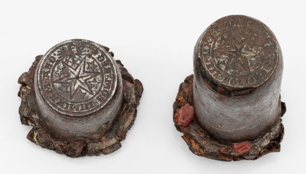 Two iron coinage stamps for the reverse of a so-called Batzen from the town of Isny in the Allgäu in Bavaria.