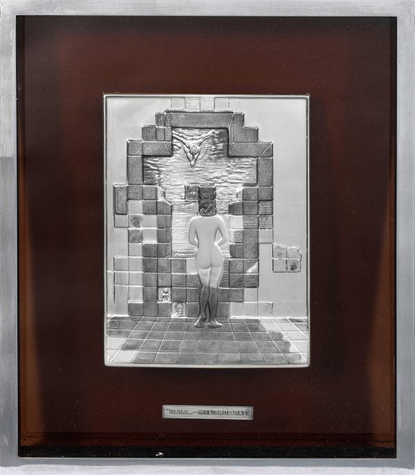 Reliefplakette aus 925er Silber. Sign., betitelt und bez. sowie mit Silberstempeln. Verso auf Zertifikat nummeriert 882. H. 22,1 cm, B. 16,8 cm. Originalrahmen.