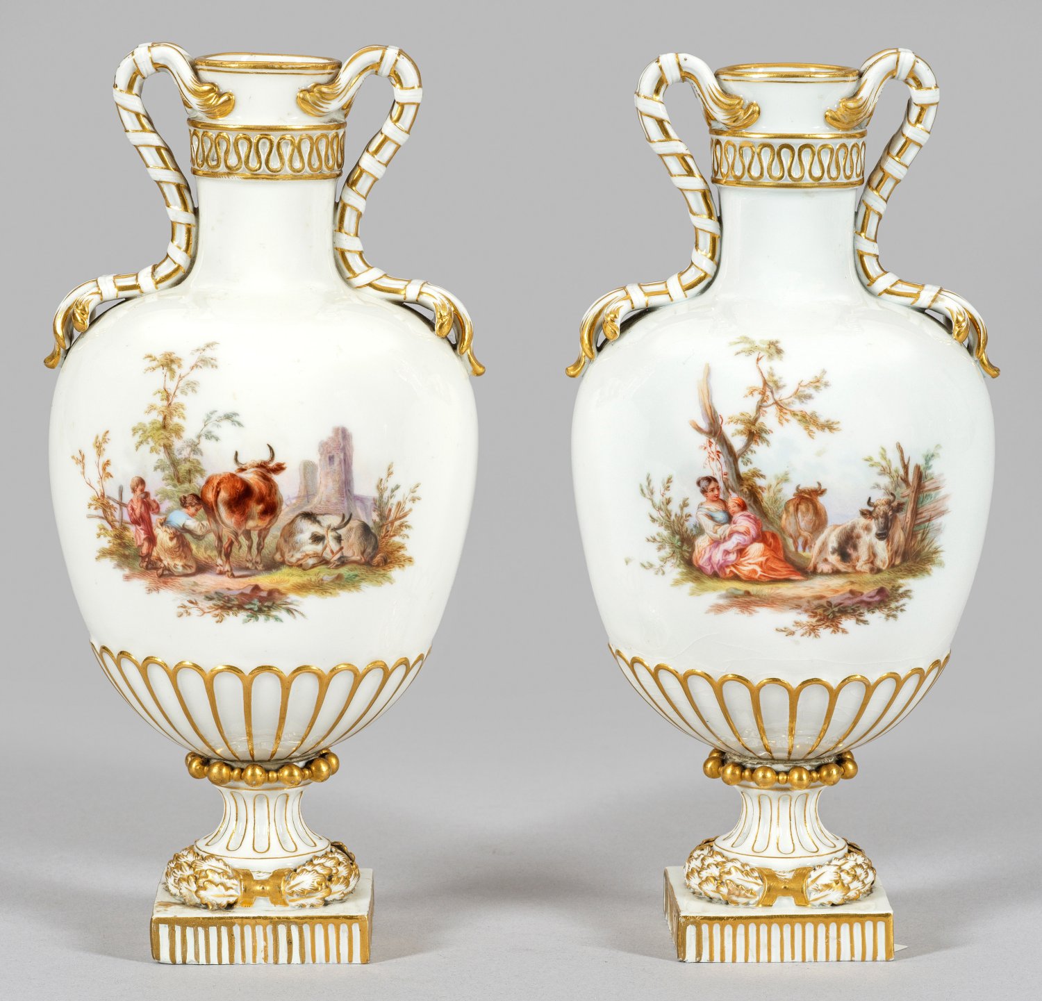 Lot 472: Paar Louis XVI-Vasen mit Schäferszenen von Meissen