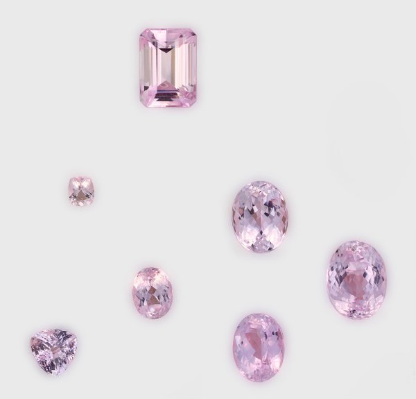 Seven pink coloured kunzites.