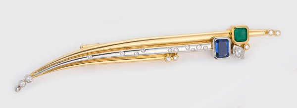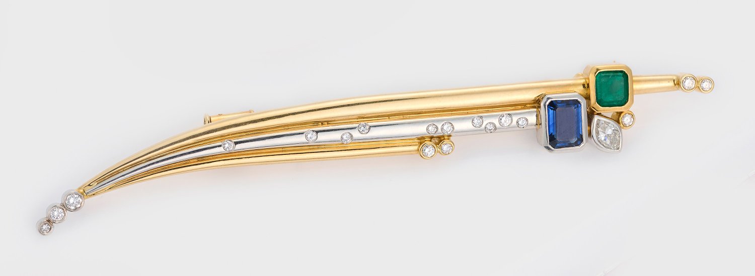 Lot 1105: Moderne Saphir-Smaragd-Brosche mit Diamanten