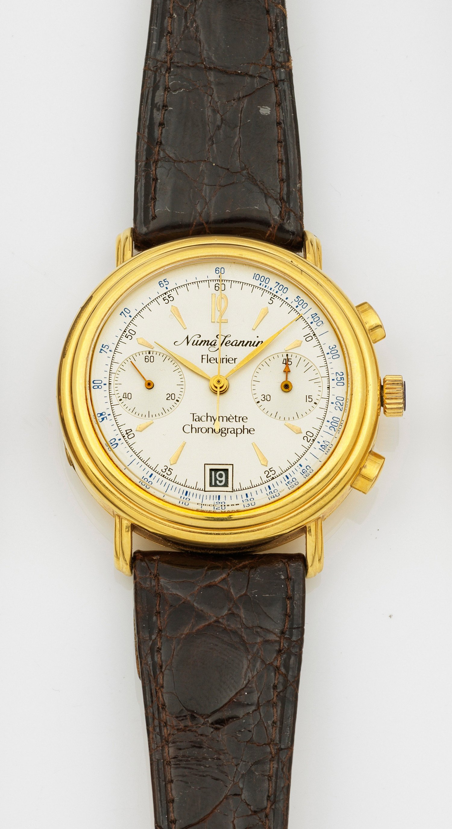 Gentlemen's wristwatch by Numa Jeannin, mechanical movement, in steel gilded. Maker's mark.